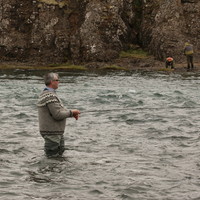 Þau fengu bæði fljótlega lax á færið og Þórunn náði að landa fyrsta laxinum rétt fyrir klukkan 9. Reyndist það vera væn hrygna, 79 sm og 5,2 kg eða 10,5 pund.